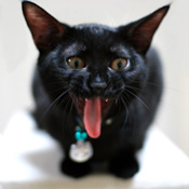 手に噛みつこうとしたら、すかさず、それをお口にカプっと!