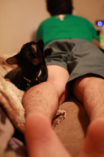 コタローさん、僕の太ももに乗っかってきて一緒にウトウトし始めまして。