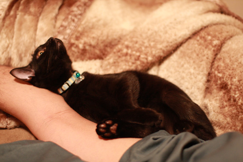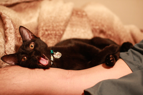 黒猫、重いだっこ。