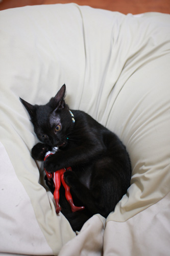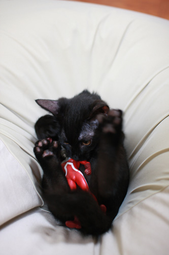 これを広げるとカメラそっちのけで飛びかかるものですから、