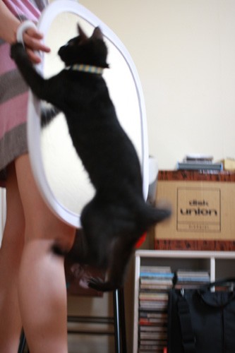 もともと銀色の金具や鏡などの光りものに過剰反応していましたが、