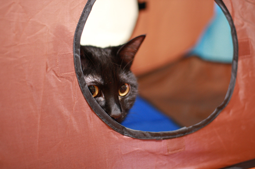 誕生日プレゼントってことで、ナイロンでシャカシャカと猫心をくすぐりそうなテントを購入。